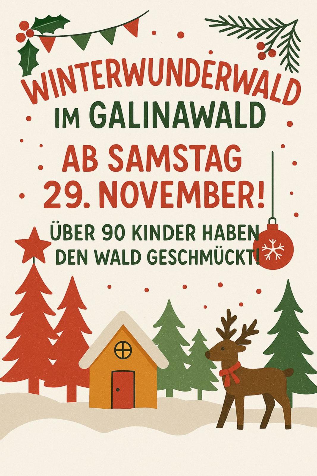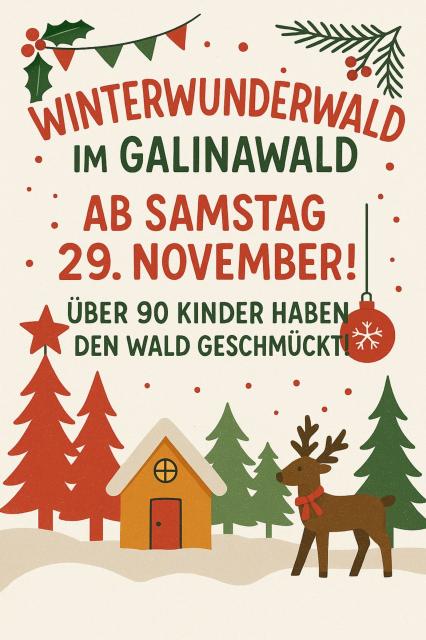Am 28.11.2024 haben über 90 Kinder gemeinsam mit ihren Betreuer:innen, Lehrer:innen und weiteren Helfer:innen des Galinawald-Vereins den heurigen Winter-Wunder-Wald geschmückt.