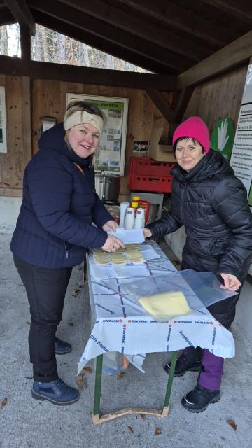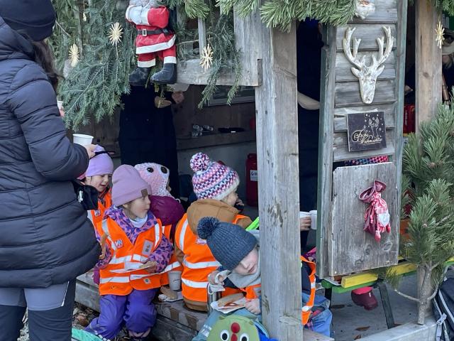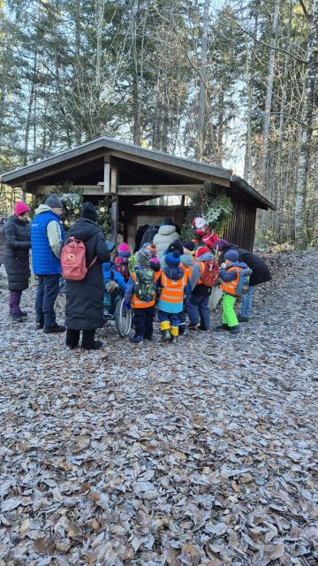 Als Belohnung gab es Wienerle und ein heißes Getränk. Bei kalten Temperaturen und Frost sah der Wald gleich bezaubernd aus.